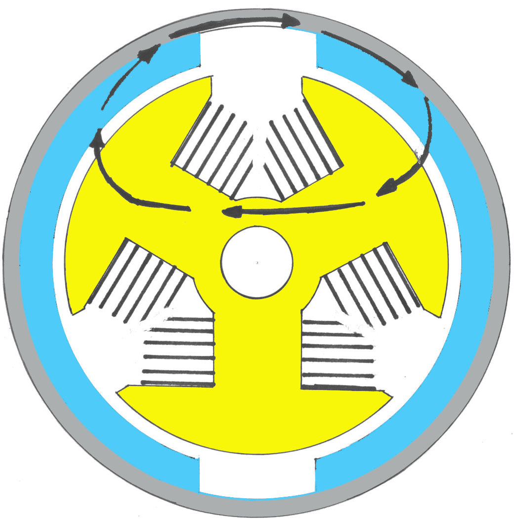 centre of the rotor have to travel through a large air gap, before they