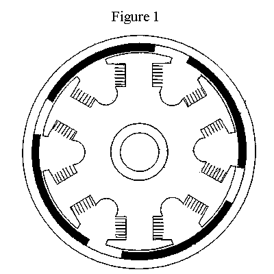 2 illustrates how the conventional T shaped stator can be replaced with an
